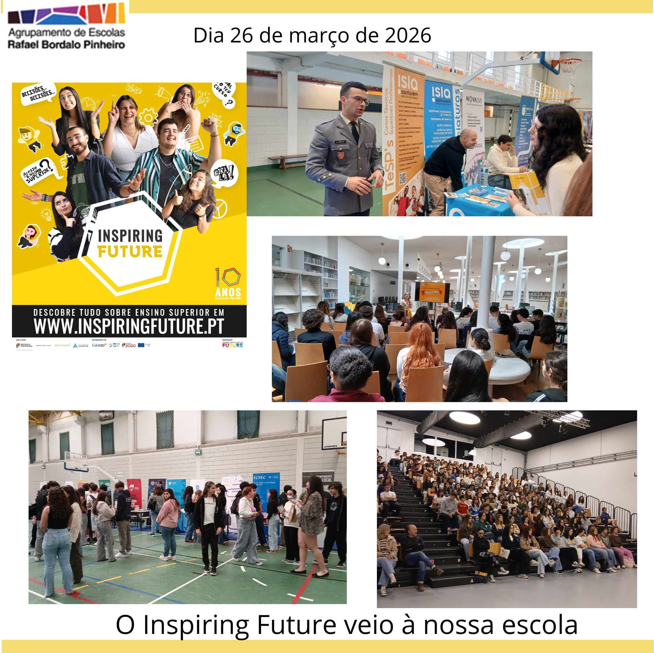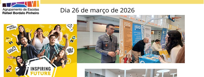 No passado dia 26 de março de 2026, a associação Inspiring Future marcou presença no Agrupamento de Escolas Rafael Bordalo Pinheiro, numa iniciativa integrada nas comemorações do Dia do Agrupamento. Os alunos puderam explorar informação sobre diversos cursos ministrados em instituições presentes na Feira do Ensino Superior que decorreu no Pavilhão Desportivo.